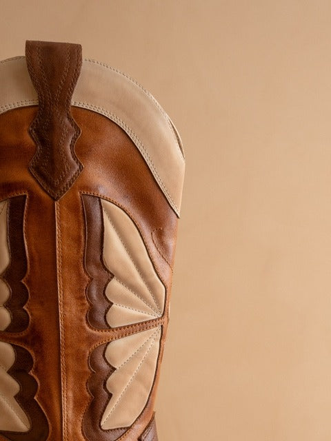 Western heritage, but make it whimsical. The Fairy boot blends classic cowboy structure with dreamy butterfly-wing inlays for a look that feels equal parts timeless and playful. Designed with a pointed toe and a comfortable stacked heel, this pair is finished with Oasis Society’s signature DreamCloud cushioned sole, so you get all-day comfort without sacrificing style.