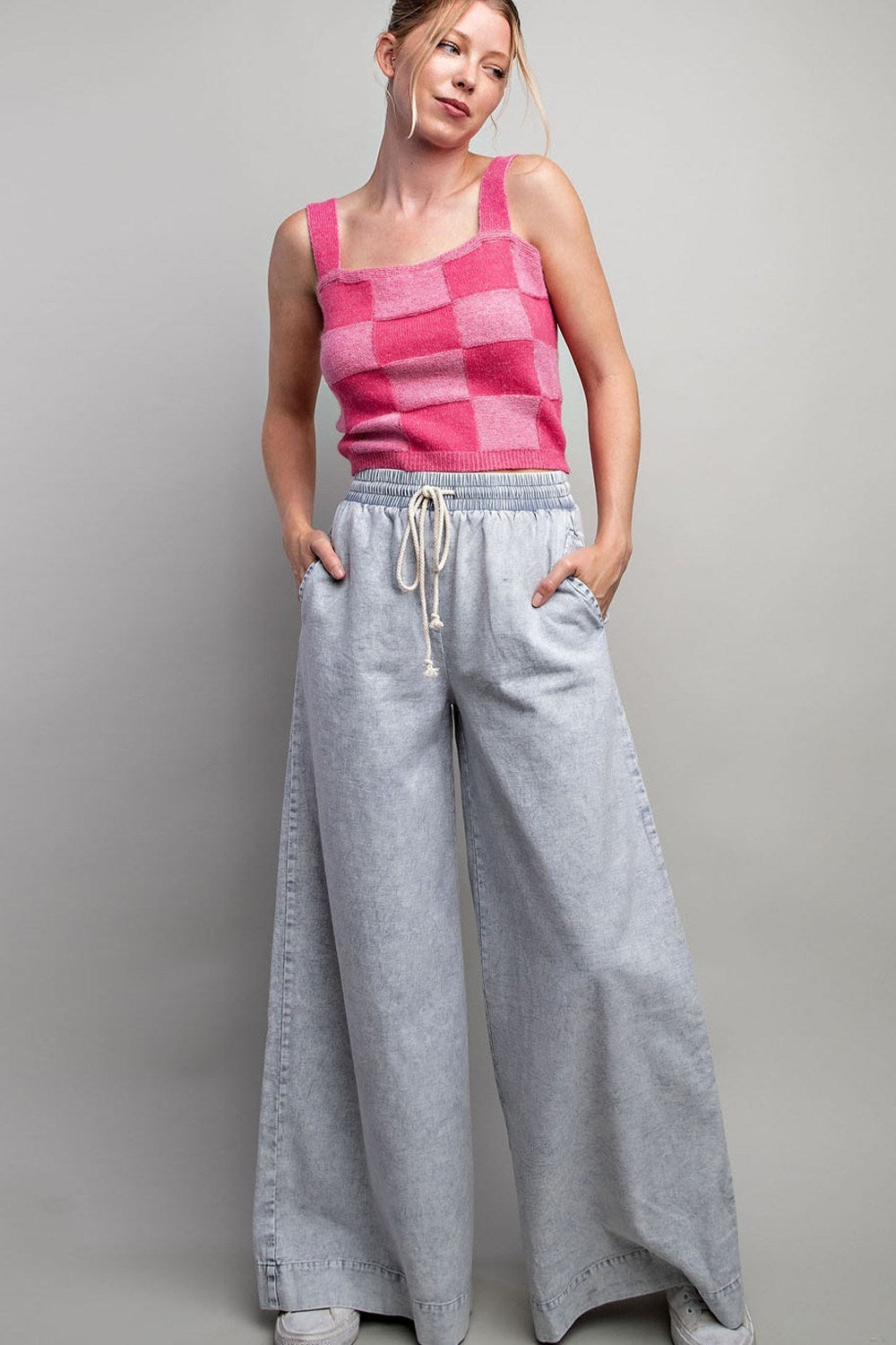Add a bold pop of pattern to your wardrobe with this trendy two-tone check knit tank. Featuring a checker print design with a square neckline, cropped length, and ribbed hem, this sleeveless sweater tank brings both playful edge and modern style. Perfect for wearing solo or layering under jackets and cardigans.