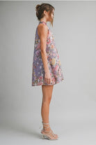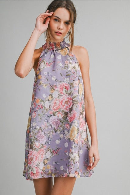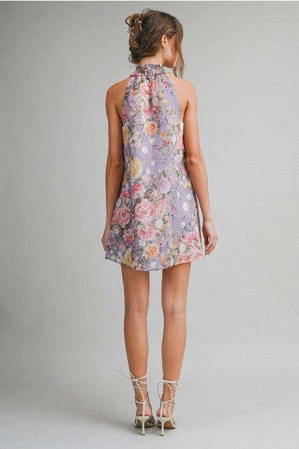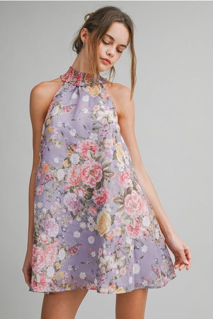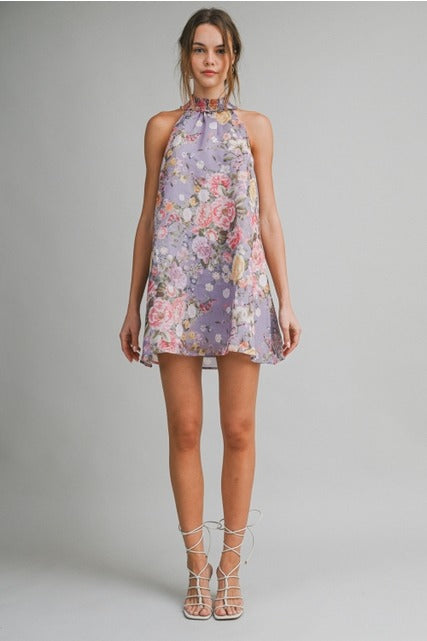 Floral Halter Mini A-Line Swing Dress - Le Cliche