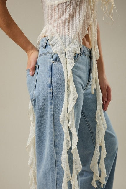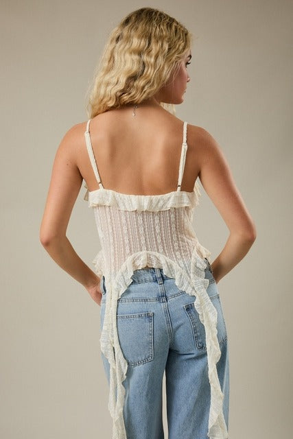 Front Tie Lace Cami with Cascading Ruffle Details - Le Lis