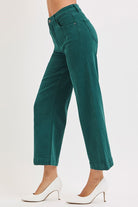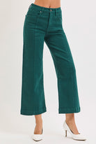 Tummy Control High Rise Pin Tuck Wide Leg Cropped Jeans - Risen