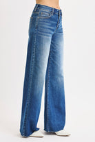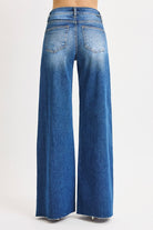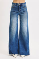 Tummy Control Wide Leg Palazzo High Rise Jeans with Raw Hem - Risen