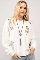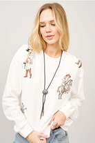 Embroidered Western Cowgirl Graphic Pullover Sweatshirt - Blue B
