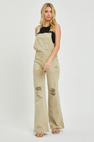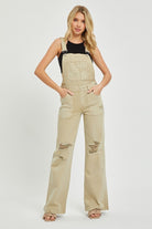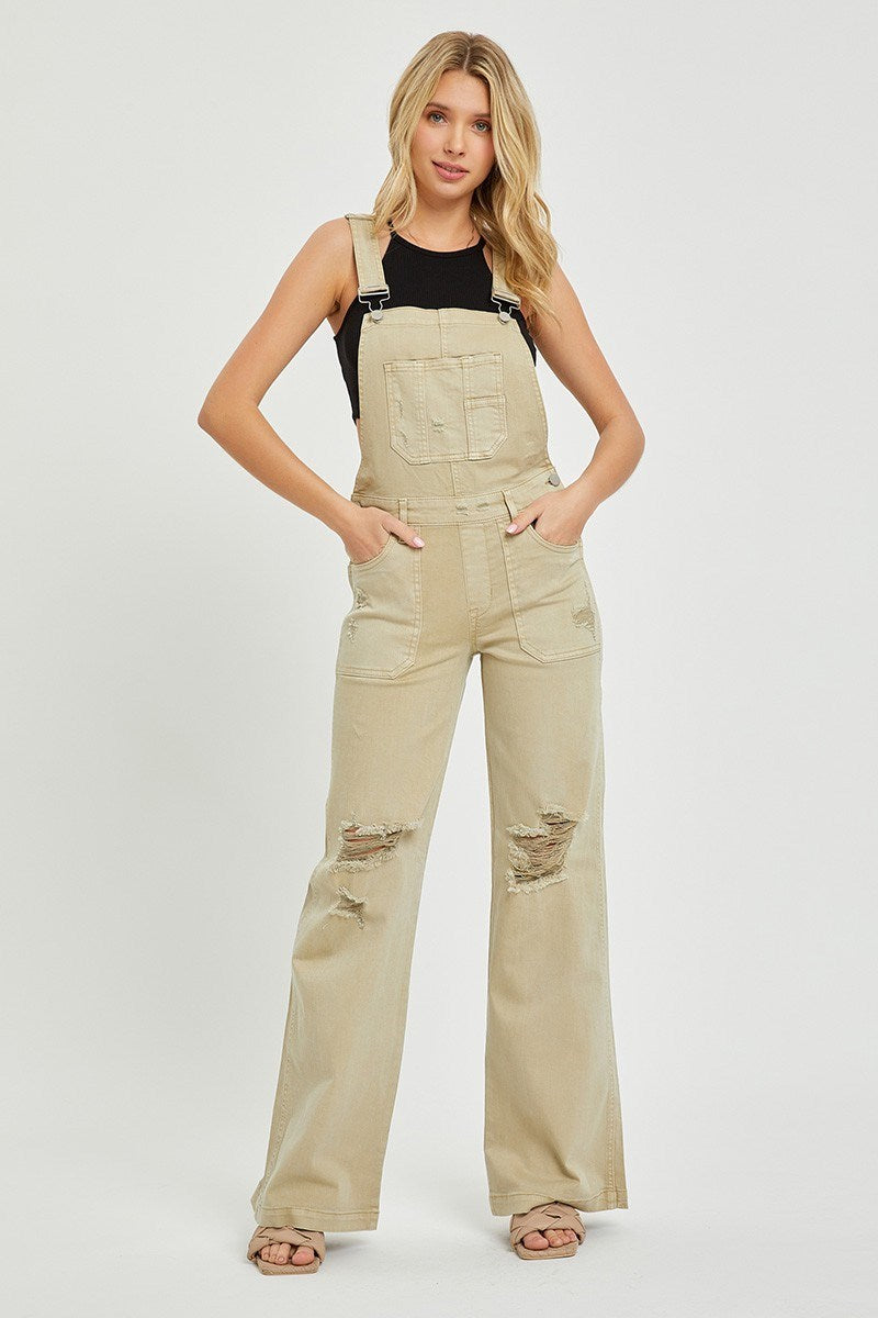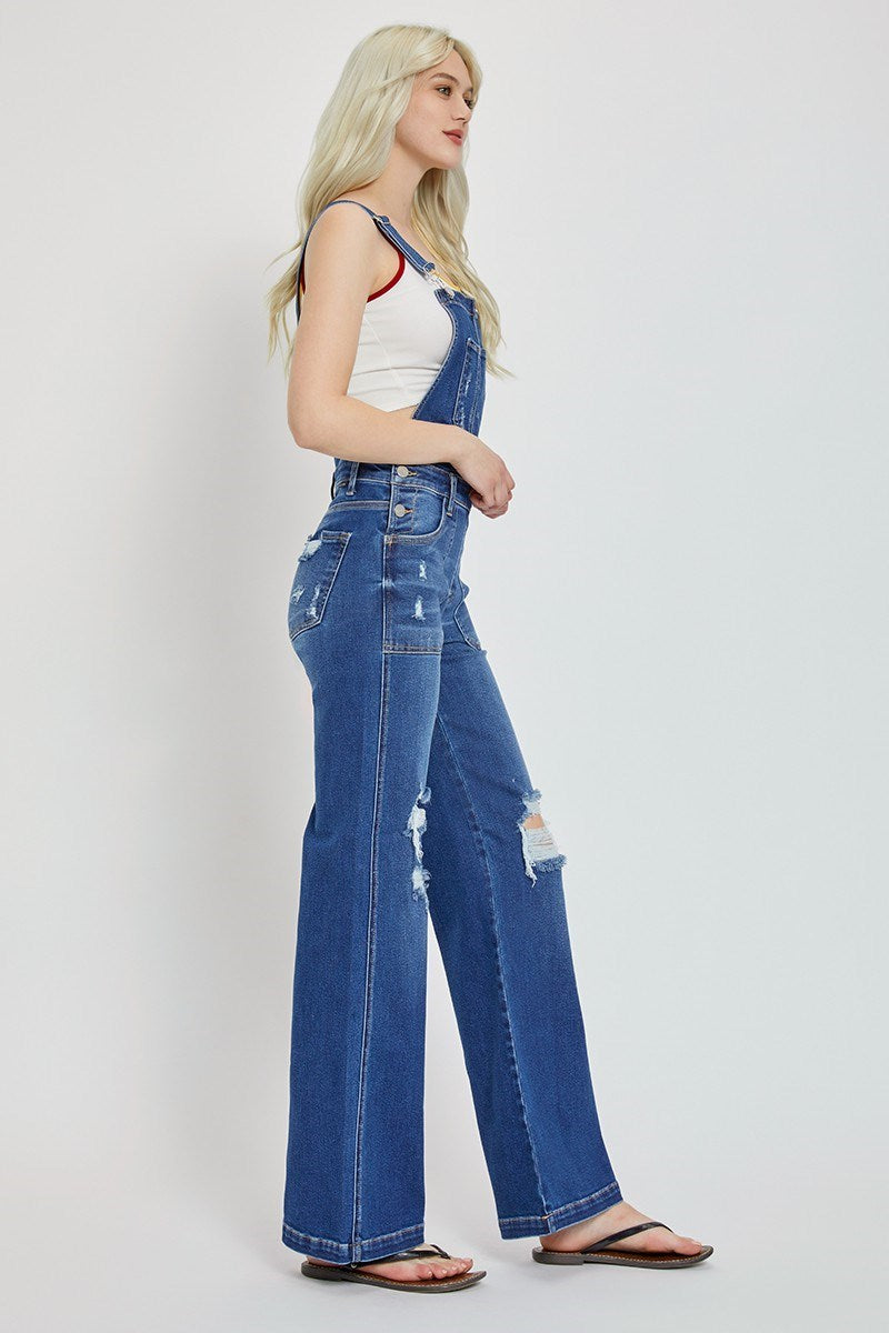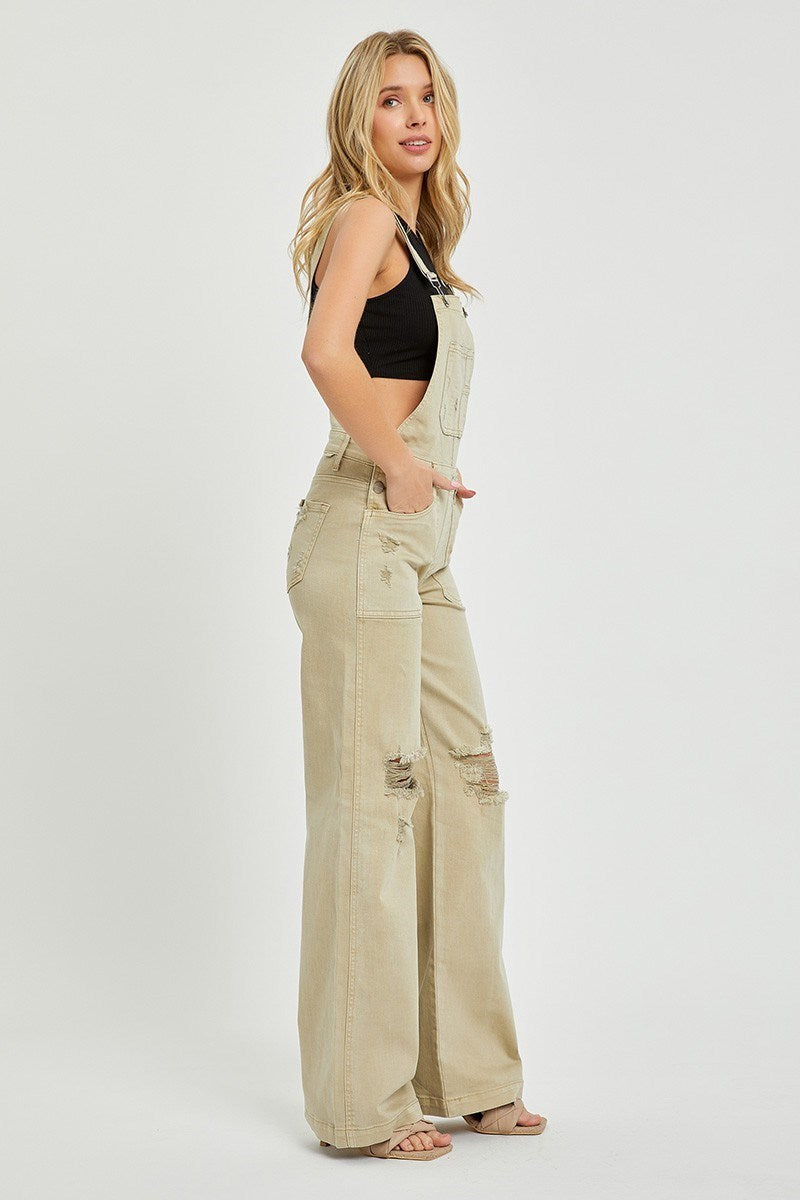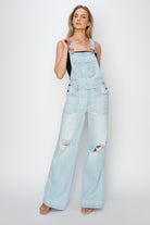 Patch Pocket Wide Leg Denim Overalls - Risen