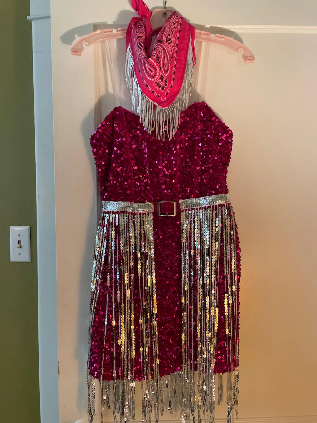 Sequin Fringe Mini Dress with Bandanna